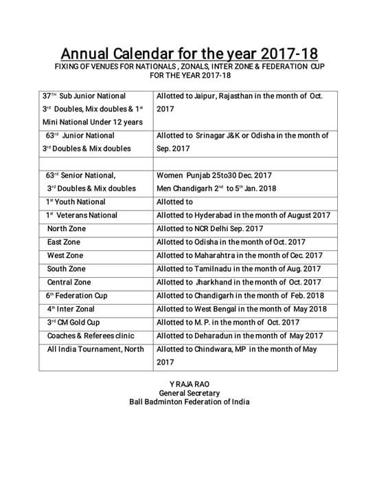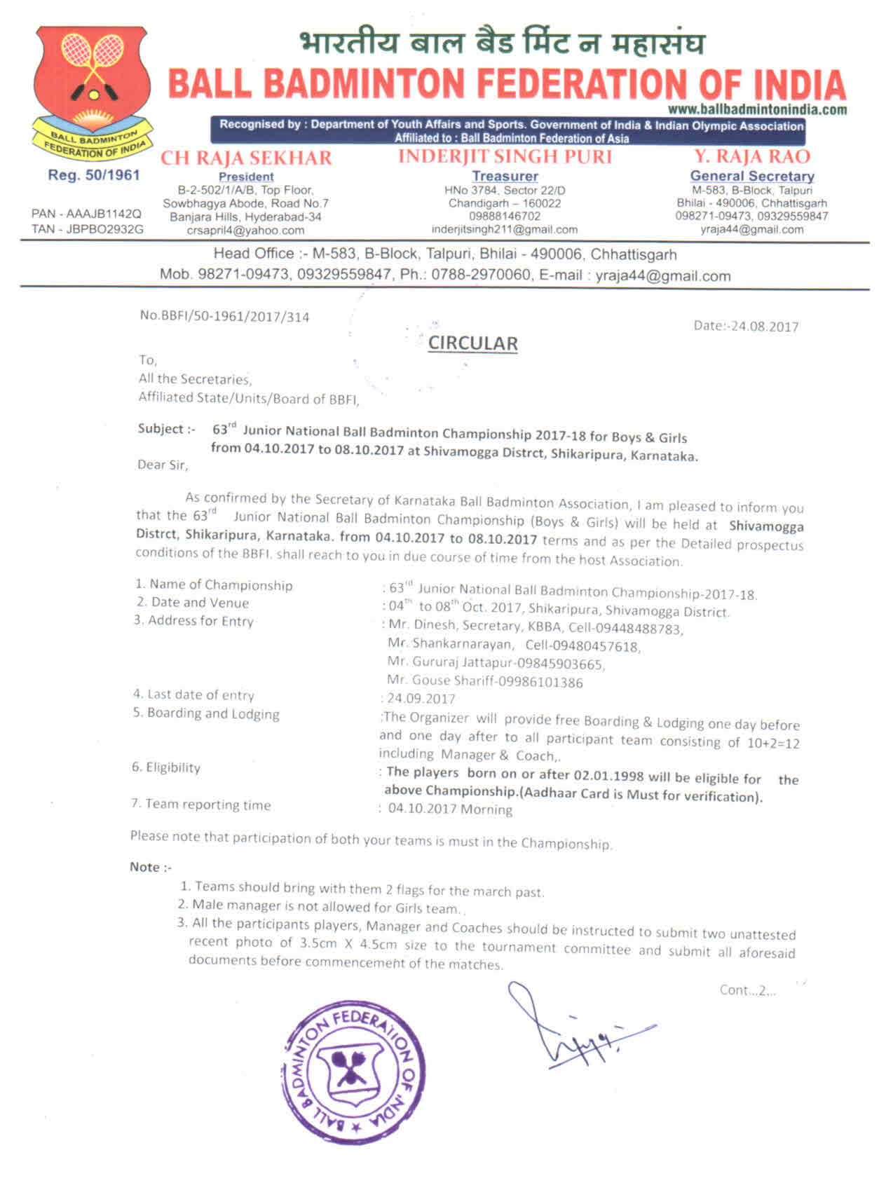 Circulars for Nationals, Zonal Championship & Events by BBFI